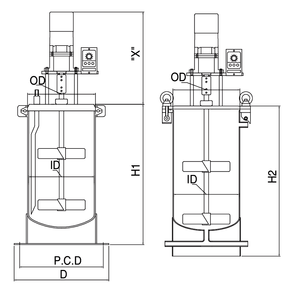 Capacity | H1 | H2 | OD | ID | D | P,C,D | Sanitary | Bolt | Hole Size | X | 내부용기 |