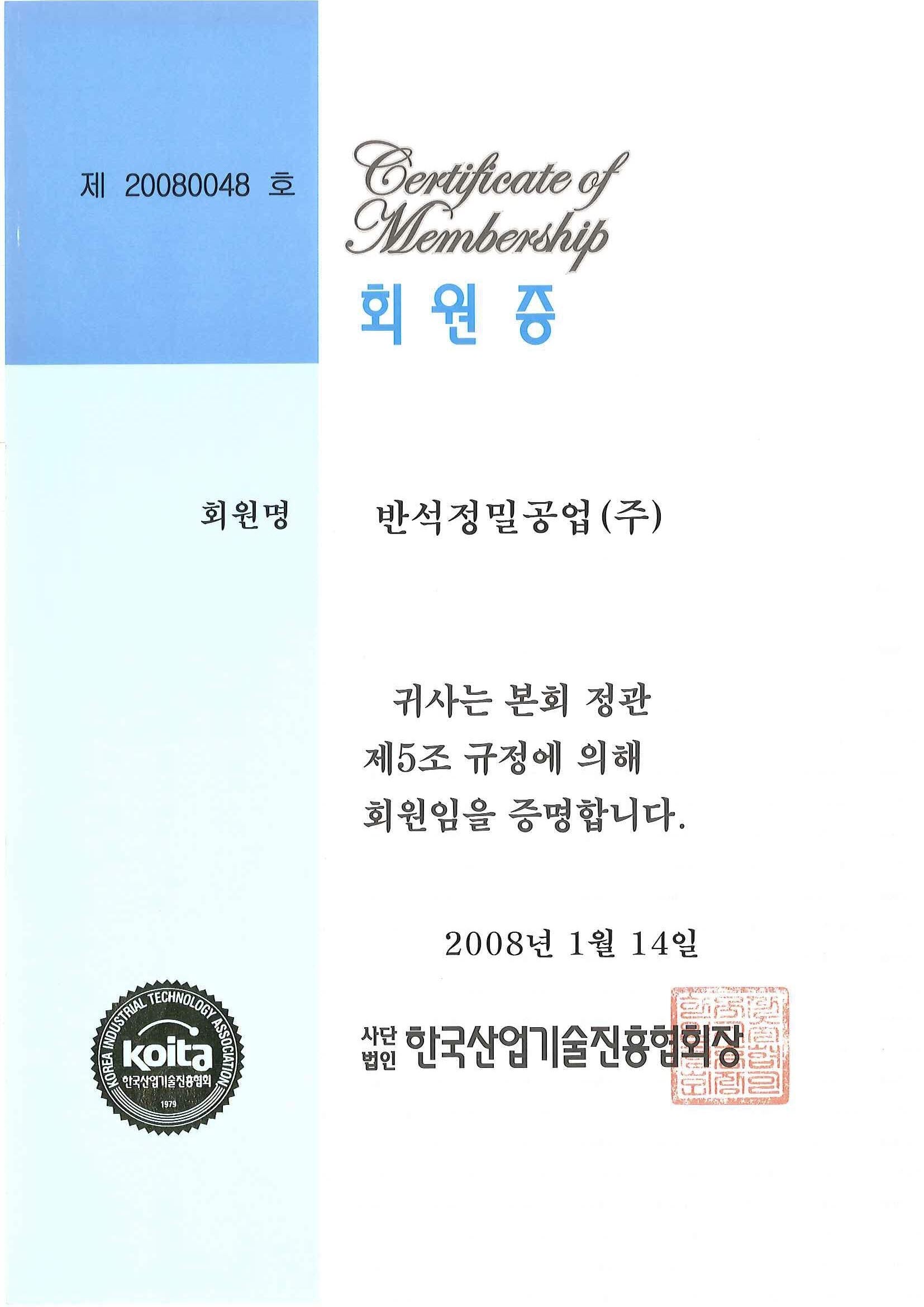 기술평가 우수기업 인증서